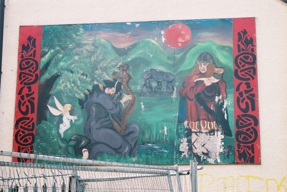Mythical Ireland is depicted with a fairy, harper, dolmen, and warrior. See previously Draoıchláırseoırí An Chınn Bhaıle.
