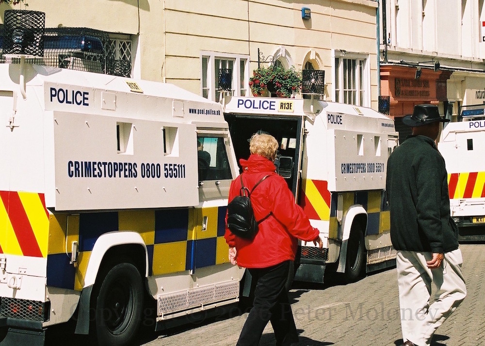 The “confidential telephone” of years past becomes “crimestoppers”, on the side of new PSNI vans. Bishop Street, London-/Derry.