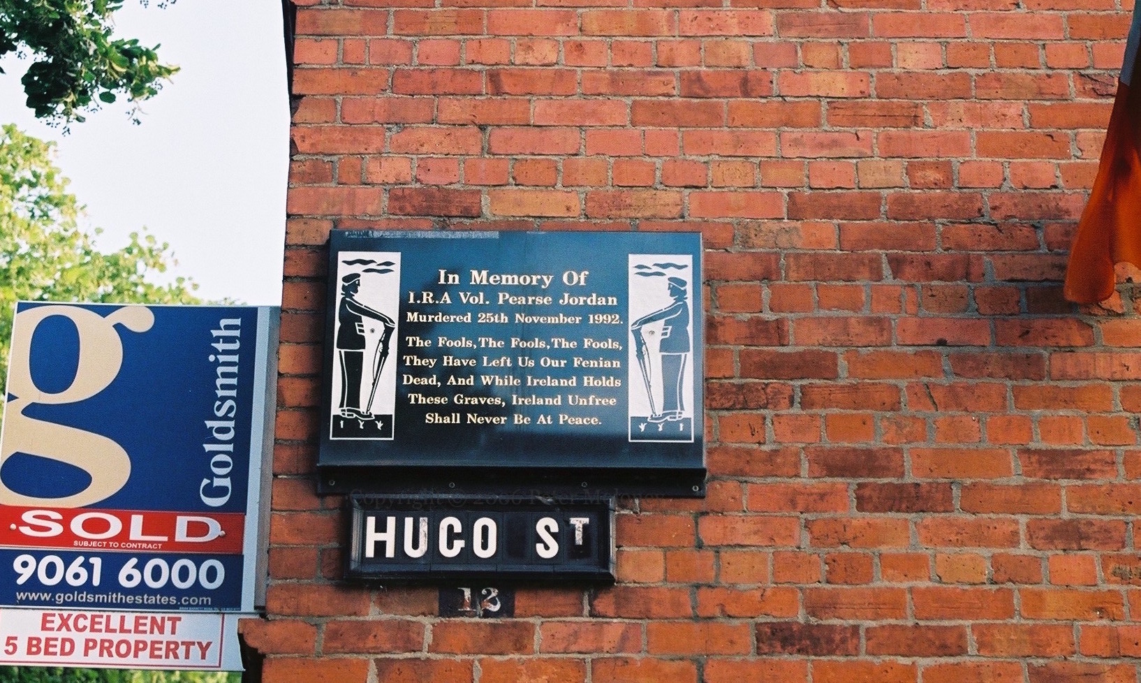 IRA volunteer Pearse Jordan was shot by the RUC on November 25th, 1992, after the stolen car he was driving was rammed off the Falls Road. The European Court ruled that his death was in breach of the European Convention On Human Rights.