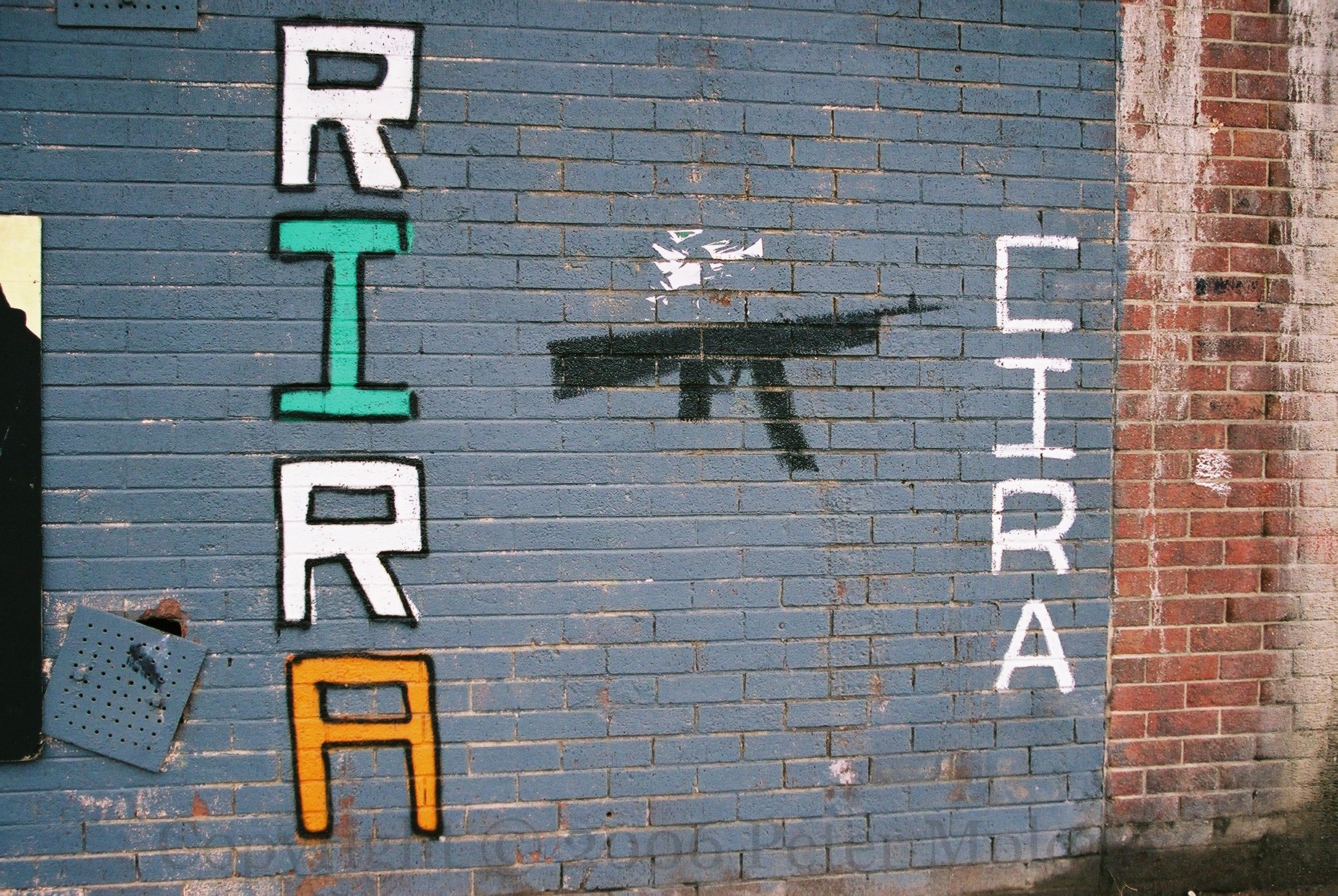 This series of images comes from the Lecky Road, Derry underpass. Patsy O’Hara, Joe McDonnell, and Tom McElwee get individual boards. Unusually, both the Real IRA and Continuity IRA are included in the final panel. As can be seen in the wide shot, to the left are Roll Of Honour and BRY 1969.