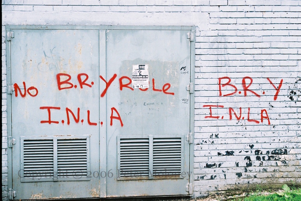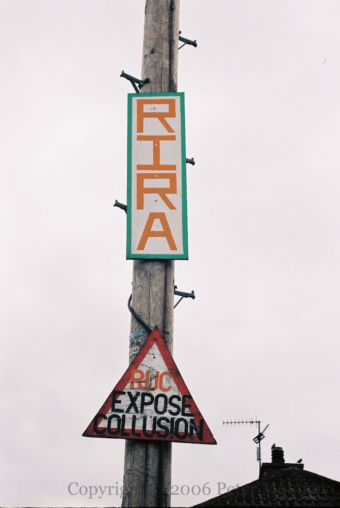 New Name, No Change! 2006-08-192025-03-05Extramural Activity Three from Ballycolman Road, Strabane: “PSNI – New name, no change!”; “BRY rule” and “INLA”; and RIRA and “RUC expose collusion” boards. Click image to enlargeCopyright © 2006 Peter MoloneyM02836 M02837 M02838 Share this: Share on X (Opens in new window) X Share on Facebook (Opens in new window) Facebook Like Loading... Related