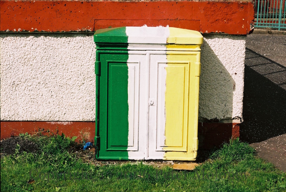 Three images from north side of Lecky Road (into Dove Gardens), Derry. The old-fashioned electrical box in tricolours would also be replaced as part of the rebuilding of Dove Gardens and Stanley’s Walk.