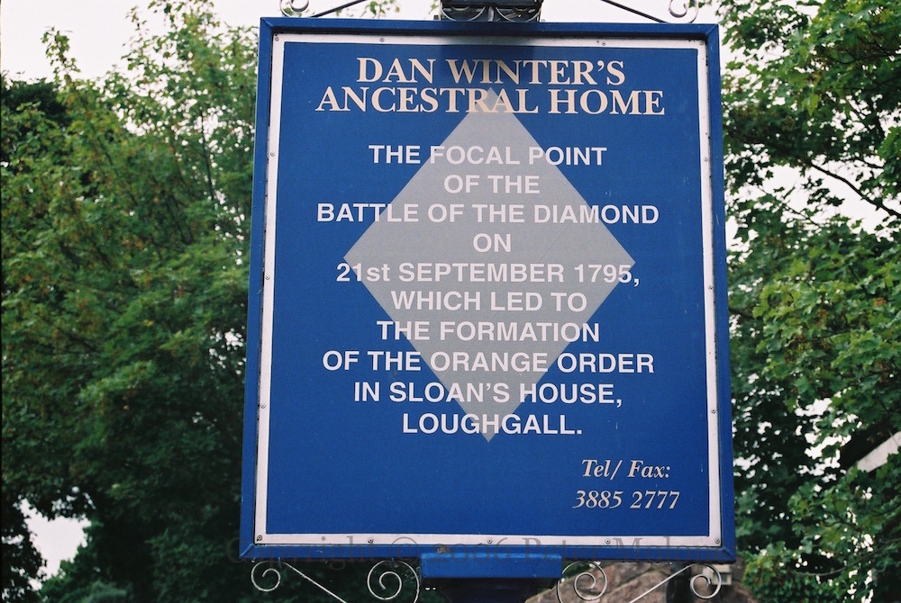 “Dan Winter’s ancestral home – the focal point of the Battle Of The Diamond on 21st September 1795, which led to the formation of the Orange Order in Sloan’s house, Loughgall.”
