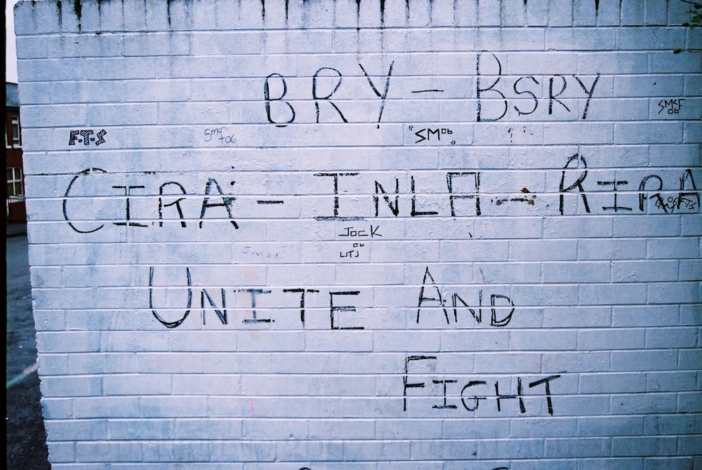 The INLA declared a ceasefire in 1998 but did not begin decommissioning its weapons until 2009. The graffiti shown above (Rossville St, Derry) calls on it to unite with hard-line republicans from the Continuity and Real IRAs.