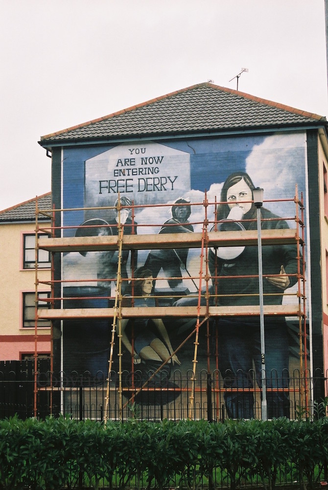The Bernadette mural by the Bogside Artists is prepared for an update, ten years after originally being painted, in 1997.