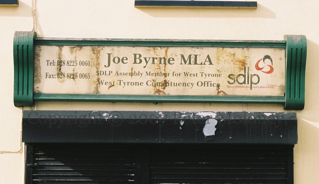 Three constituency offices – the SDLP’s Byrne had lost in 2003 and 2007, pushed out by Kieran Deeny who was campaigning to keep the Tyrone County Hospital open – and a Sınn Féın hoarding in Omagh. James Street (x2), Dublin Road, Dromore Road