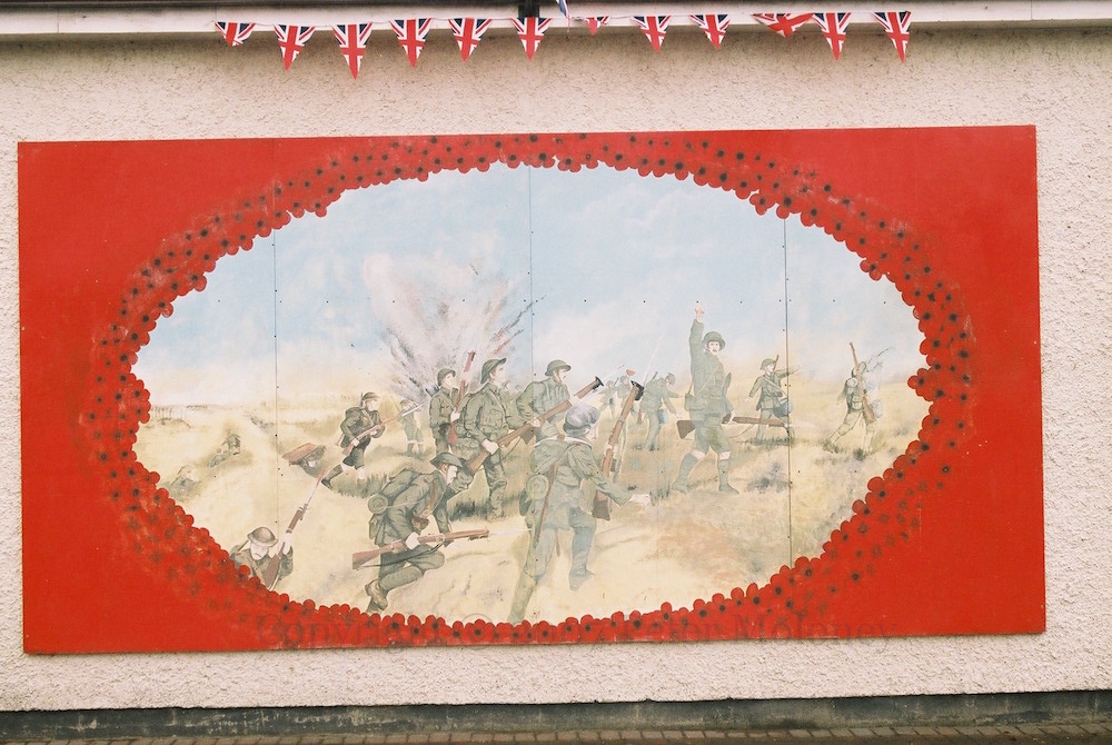 Soldiers from the 36th Division go over the top at the Somme, as depicted in JP Beadle’s Attack Of The Ulster Division (belfastsomme.com).