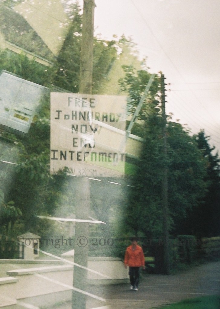 “Free John Brady Now – End internment – W???/32CSM” on Chapel Road exiting east from Dungiven. John Brady was released under the Agreement but was returned to prison in 2003 on weapons charges. He died in prison in 2009 (RN); an inquest will begin in November 2018 (Irish News).