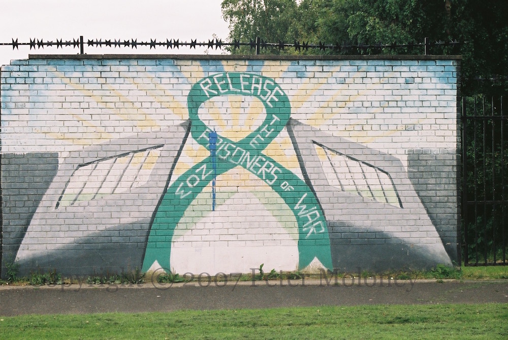 Still standing after a decade or more on Racecourse Road (see 1998) – a ‘green ribbon’ mural from the ceasefire/GFA period.