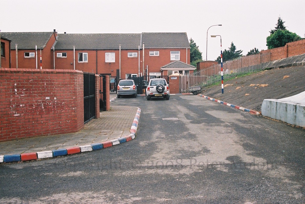 The Harland & Wolff shipyard is on Queen’s Island, a piece of land formed when the channel into Belfast was expanded. Workers would walk from east Belfast to the shipyard. This is the scene in (modern-day) Armitage Close/Harkness Parade in east Belfast, with a mural of turn-of-the-century shipyard workers by John Johnston, drawing inspiration from William Conor’s Shipyard Workers Crossing Queen’s Bridge and Over The Bridge.