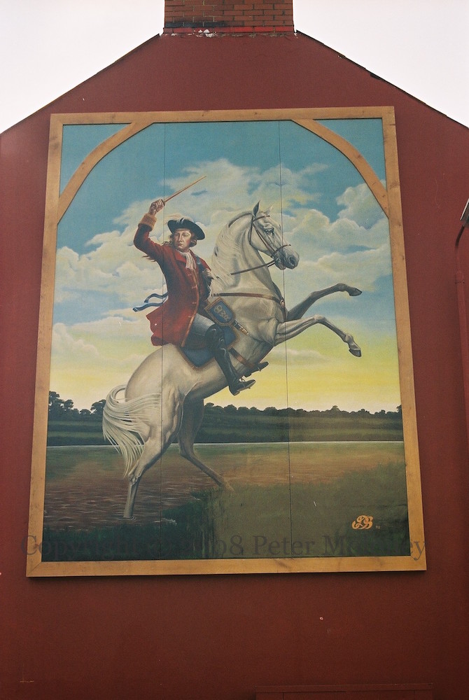 The Village Eddie is re-imaged with a painting of King Billy at the Boyne by John Darren Sutton in Tavanagh Street, Belfast.