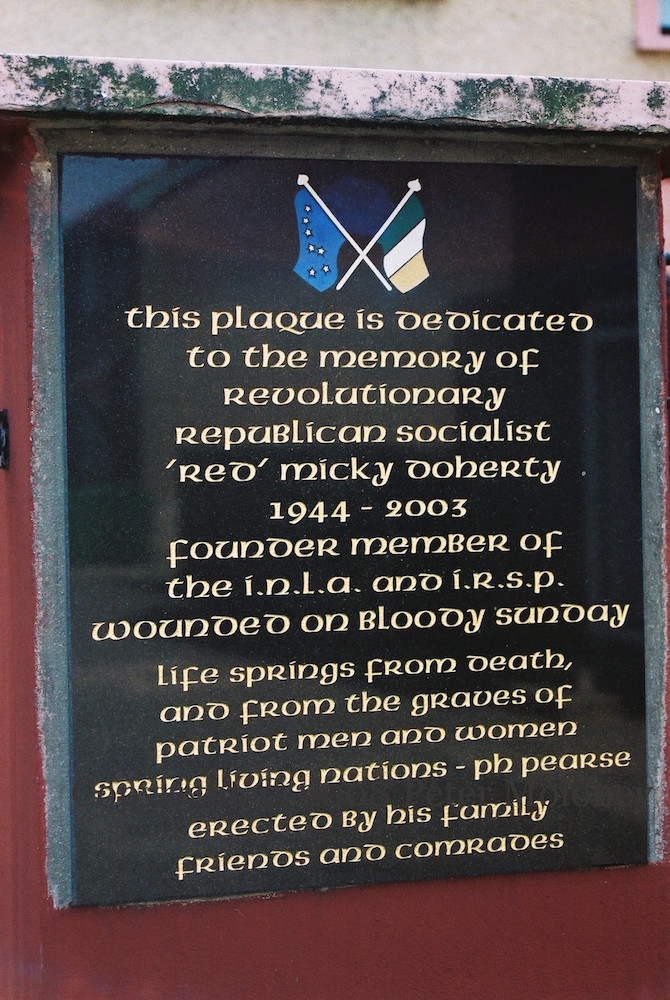 Plaque in Lisfannon Park to INLA volunteer ‘Red’ Micky Doherty. First seen in 2005.
