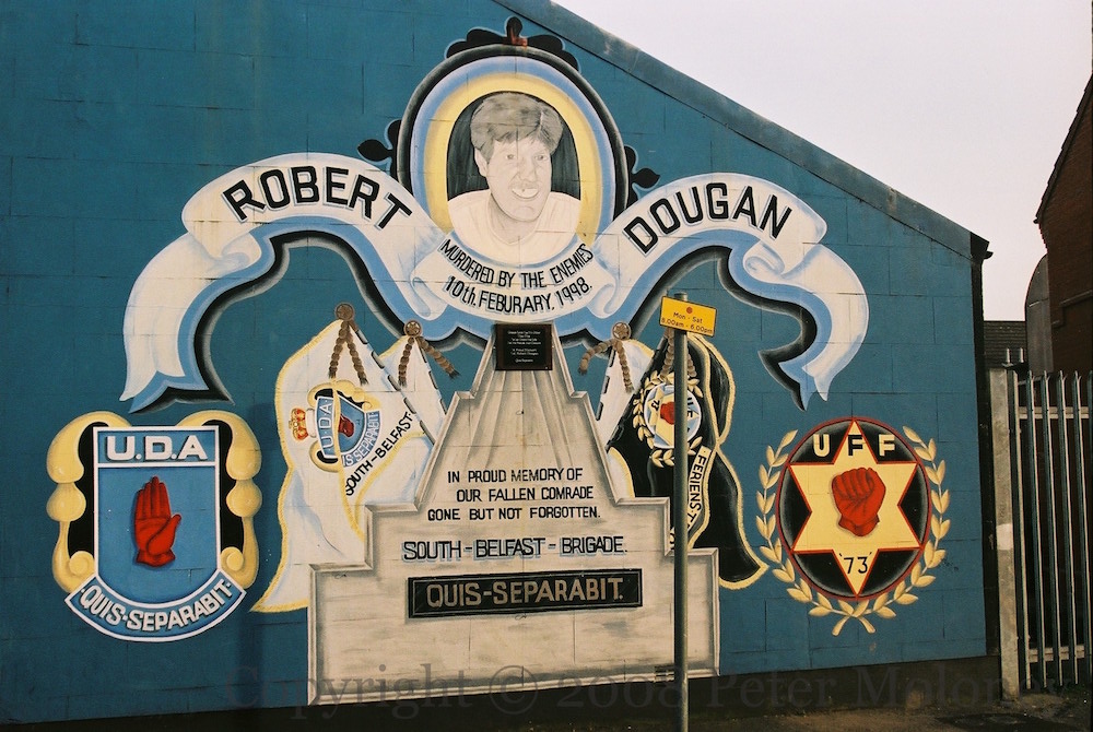 A plaque is added to the Robert Dougan mural in Blythe Street, Belfast. Compare to the mural in 2007.
