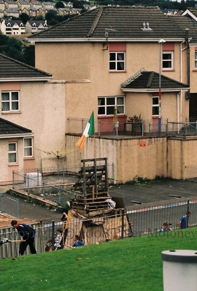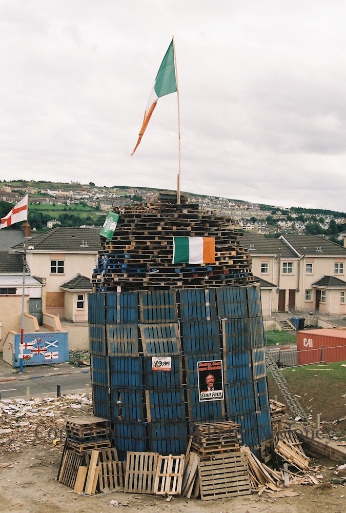 The Fountain bonfire for 2008 includes a Tricolour and Celtic flags, and a Sınn Féın electoral poster. There’s also a children’s bonfire. See also: 2007’s bonfire.