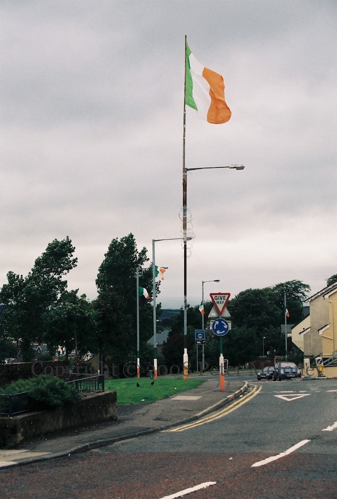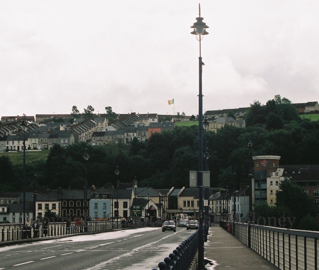 These images are from Top Of The Hill/Gobnascale. The size of the Tricolour flying on Old Strabane Road can be gauged by the second picture, which was taken from Craigavon bridge.