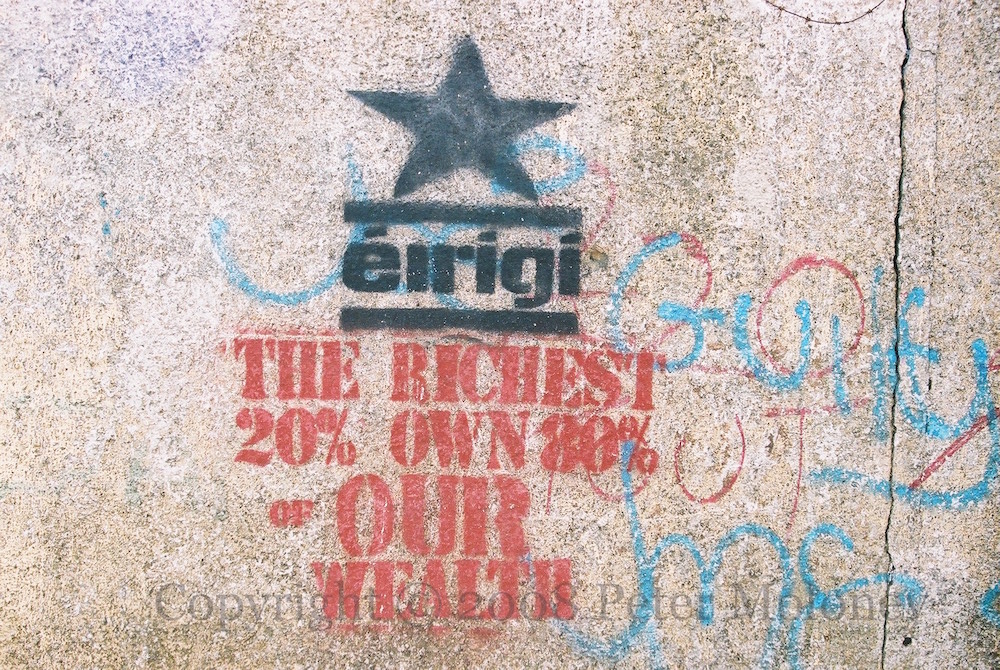 “The richest 20% own 80% of our wealth.” Stencil from the recently-formed Éırígí (web) on Suffolk Road.