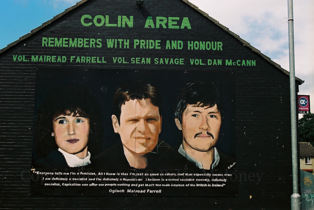 “Everyone tells me I’m a feminist. All I know is that I’m just as good as others, and that especially means men. I am definitely a socialist and I’m definitely a Republican. I believe in a united socialist country, definitely socialist. Capitalism can offer our people nothing and yet that’s the main interest of the British in Ireland – Óglach Maıréad Farrell.” Farrell was one of the Gibraltar 3 (along with Sean Savage and Dan McCann), killed by SAS soldiers in 1988. Painted by Rısteard Ó Murchú.