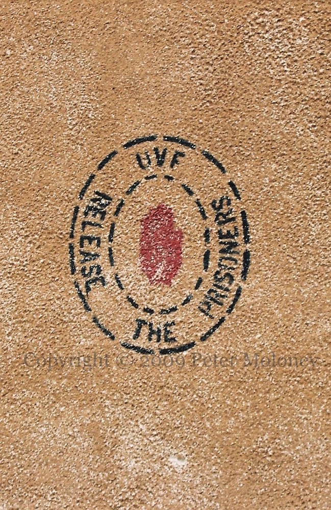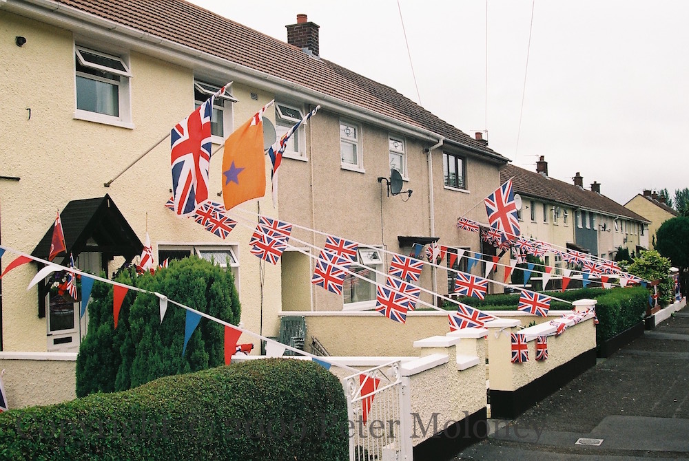 Clonduff prepares for Eleventh Night with a bonfire off Clonduff Drive and bunting in Tullyard Way. There are also nine (at least) vintage “UVF Release The Prisoners’ stencils in the area.