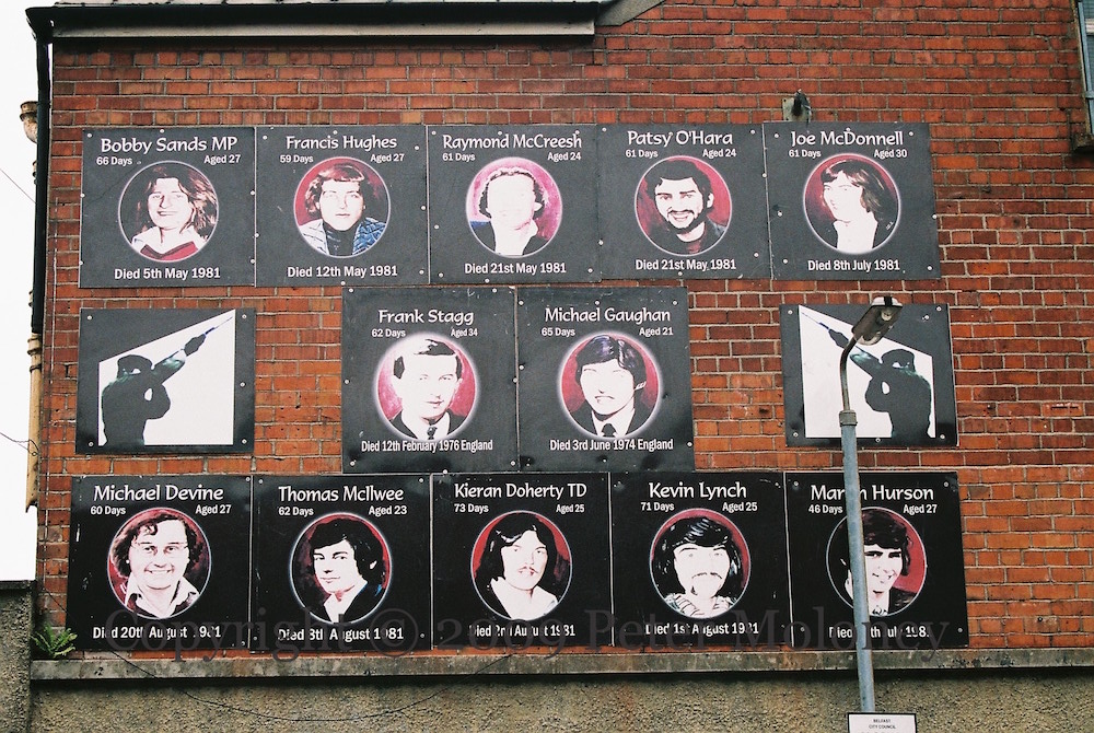 Hunger strikers of the modern era (including Frank Stagg and Michael Gaughan) in Rockmore Road, Belfast. This is the third such gallery of portraits – the first is here; the second can be seen in Google StreetView.