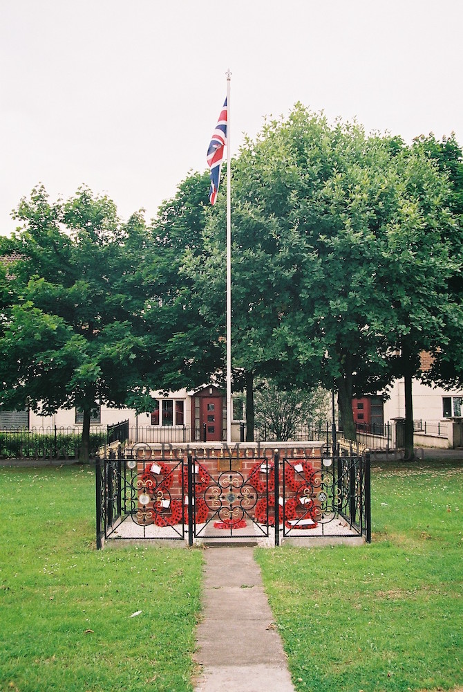“In remembrance of all those Ulstermen & women from the Greater Dunmurry area who died during the great wars 1914-1918 and 1939-1945. Also those men and women who died during the recent conflict. Lest we forget.” The “recent conflict” perhaps includes the Ulster Special Constabulary (the B Specials), formed in 1920 and replaced by the UDR in 1970 – as included in the plaque on the railings. Rowan Drive, Dunmurry. See previously: Their Loyalty Betrayed and the 2005 images of Freedom Corner.