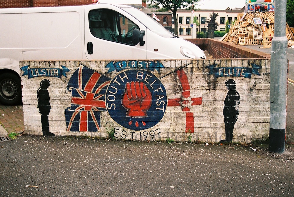 Still going strong in 2009, the Ulster First Flute mural in Linfield Gardens, first seen in 1997.