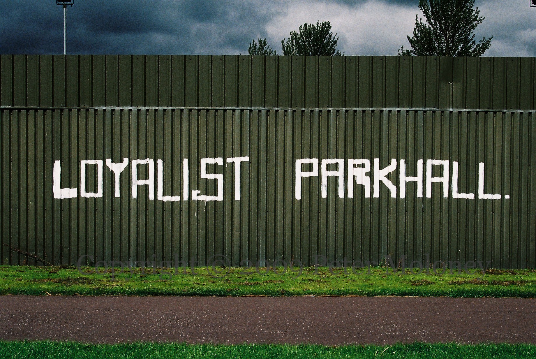 Loyalist Parkhall 2009-08-182025-03-11Extramural Activity “Loyalist Parkhall” on the Parkhall side of the industrial estate fence. Donegore Drive, Antrim Click image to enlargeCopyright © 2009 Peter MoloneyM05235 Share this: Click to share on X (Opens in new window) X Click to share on Facebook (Opens in new window) Facebook Like Loading... Related