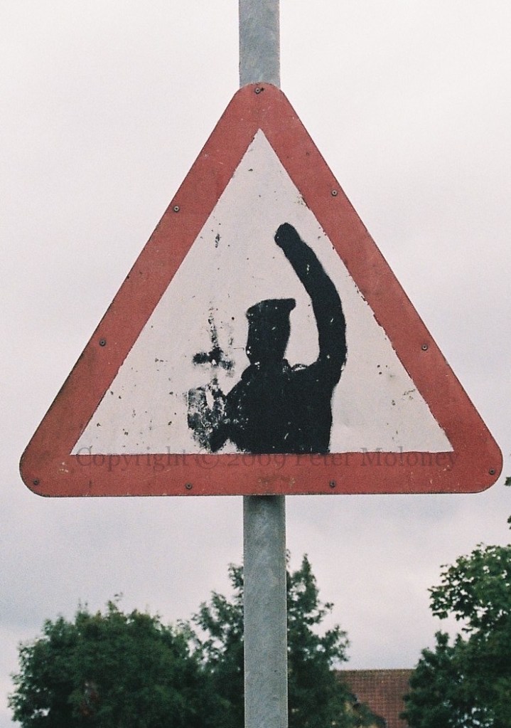 Sniper At Work 2009-08-182025-03-11Extramural Activity A vintage ‘sniper at work’ on a co-opted road-sign in Taghnevan Drive, Lurgan. Click image to enlargeCopyright © 2009 Peter MoloneyM05410 Share this: Click to share on X (Opens in new window) X Click to share on Facebook (Opens in new window) Facebook Like Loading... Related
