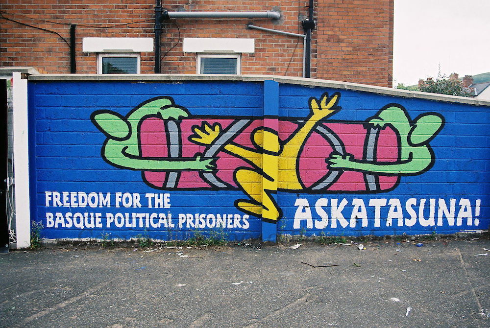 “Freedom for the Basque political prisoners – Askatasuna [Freedom]”. In January 2010, all 742 Basque political prisoners went on hunger strike to protest the policy of dispersing them to prisons all over Spain and France. Glen Road, Belfast.