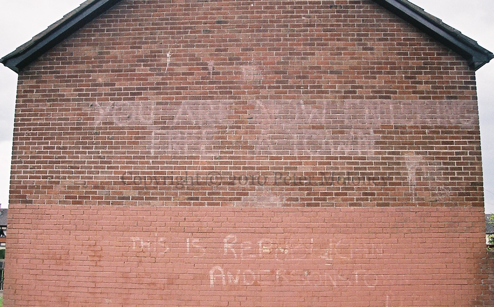 “You are now entering free A’town. This is republican Andersonstown.” Graffiti in Rossnareen Avenue, Belfast. Previously: Free! Belfast.