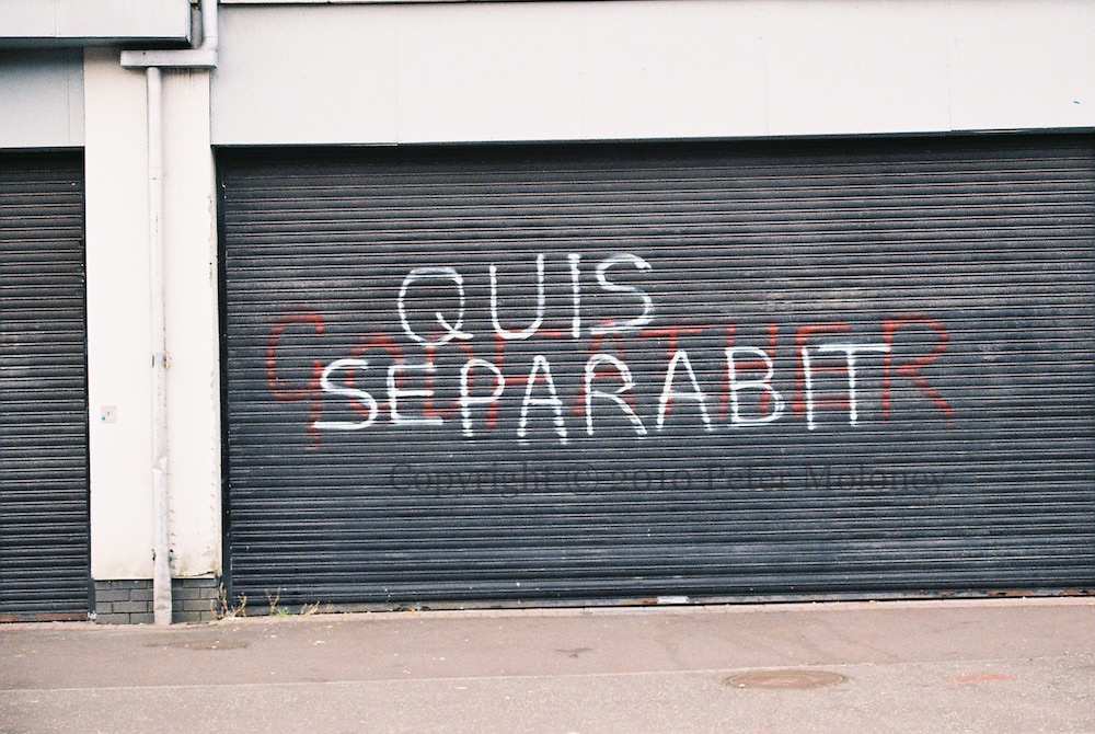 “Shakey U were ‘simply the best’ RIP. Quis separabit” on top of “Gerry Adams paedophile godfather.” Perhaps a UDA tribute to John ‘Shakey’ Wallce of the RHC.