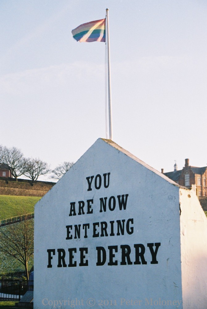 Free Derry Pride 2011-02-032025-03-10Extramural Activity The rainbow flag, symbolising gay rights, flies above Free Derry Corner in the Bogside. Click image to enlargeCopyright © 2011 Peter MoloneyM06381 Share this: Click to share on X (Opens in new window) X Click to share on Facebook (Opens in new window) Facebook Like Loading... Related