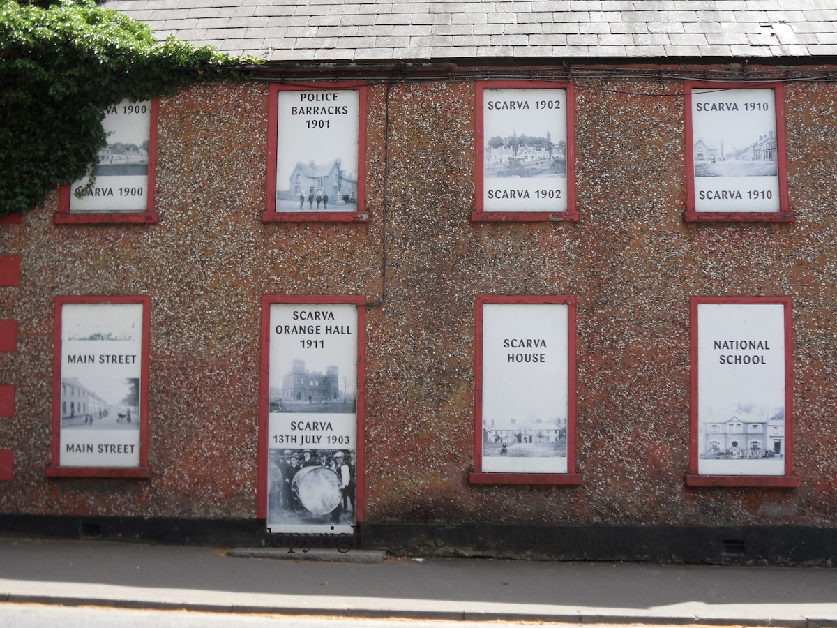 A derelict building in Scarva is used to display images of the village from 1900-1911, including specific buildings such as the police barracks, Scarva House, the National School, and Scarva Orange Hall.