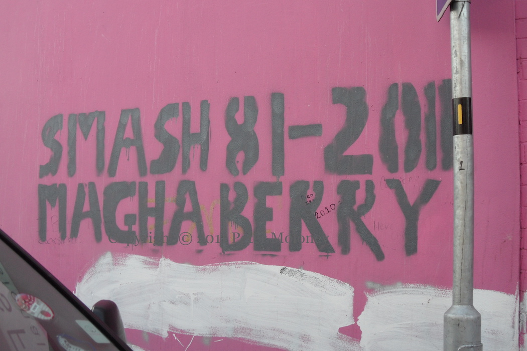 1981-2011 2011-11-122025-03-08Extramural Activity “Smash Maghaberry 81-2011” Éırígí stencils in Rockdale St. Click image to enlargeCopyright © 2011 Peter MoloneyM07519 M07520 Share this: Click to share on X (Opens in new window) X Click to share on Facebook (Opens in new window) Facebook Like Loading... Related