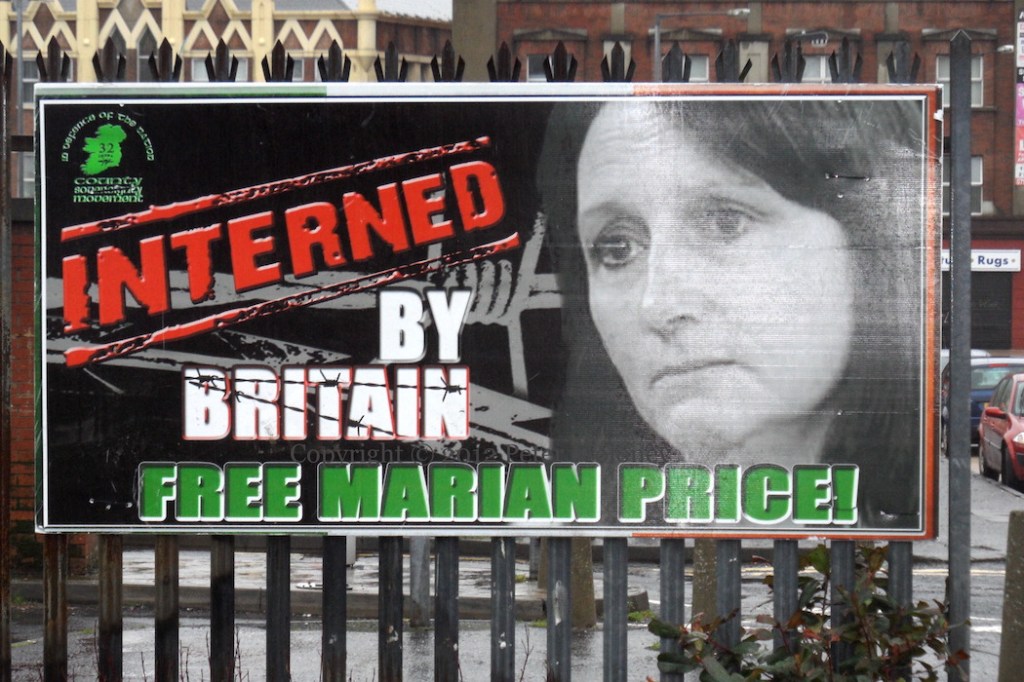 The campaign to free Marian Price continues and the public displays have progressed from graffiti to printed placards – compare with Free Marian Price from June of 2011.