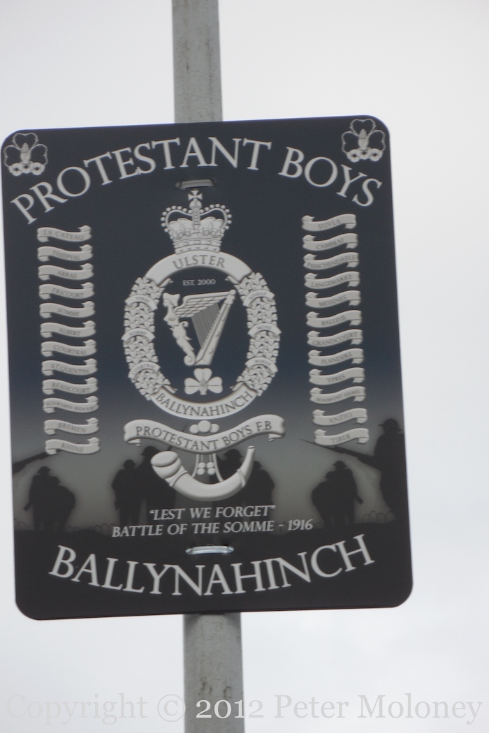 “Lest we forget – battle of the Somme 1916”, with the names of 24 WWI battles. Ballynahinch Protestant Boys flute band (Fb), “est. 2000”