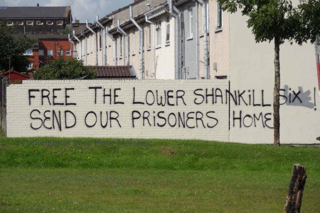 “Free the lower Shankill six! Send our prisoners home.” The reference is perhaps to six fellas arrested for stealing pallets.