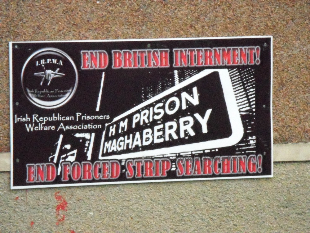 “End internment – end forced strip searching [in] HMP Maghaberry”. For background, see The Detail | BBC | Socialist Worker.