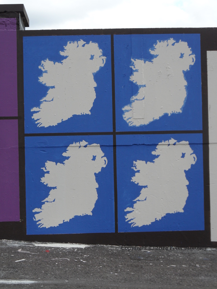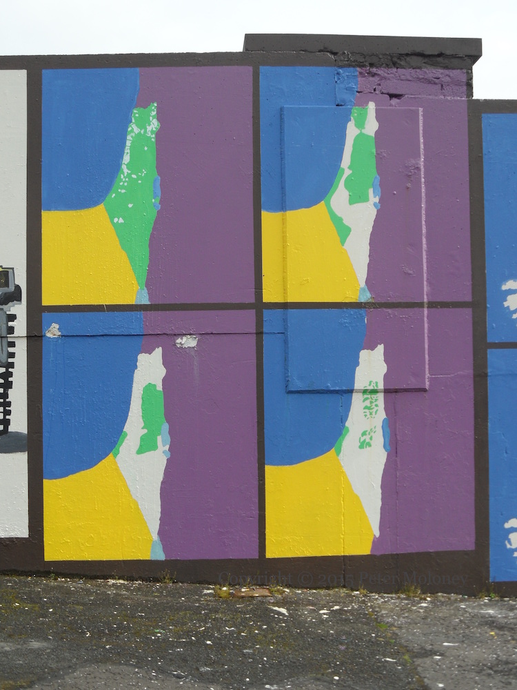 The final two are intended to show four stages of the disappearing Palestinian territories (on the left) and four stages of the disappearing Irish gaeltacht (on the right). The Palestinian one was completed – see below – but the Irish one never was.
