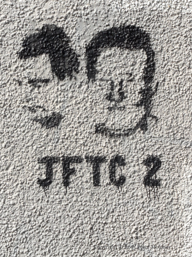 The graffiti and stencilled portraits of the pair are in the Bogside, Derry.