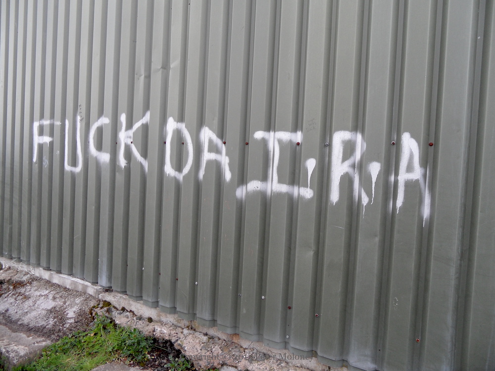 Fuck Da IRA 2015-04-022026-01-03Extramural Activity “Fuck da IRA” and “KAT” [kill all Taigs] – simple graffiti in the Steeple estate, Antrim Click image to enlargeCopyright © 2015 Peter MoloneyM11800 M11801 M11802 Share this: Click to share on X (Opens in new window) X Click to share on Facebook (Opens in new window) Facebook Like Loading... Related