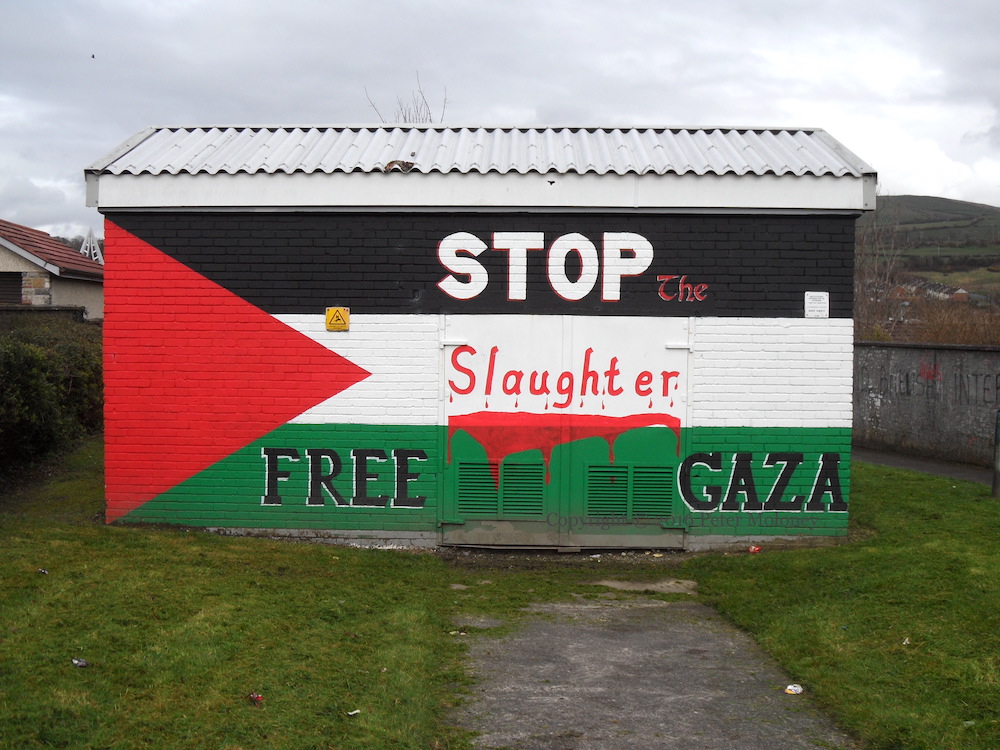 “Free Gaza” in the Ballycolman estate. This piece is from the 2014 war, in which roughly 2,300 Palestinians and 73 Israelis were killed (WP).