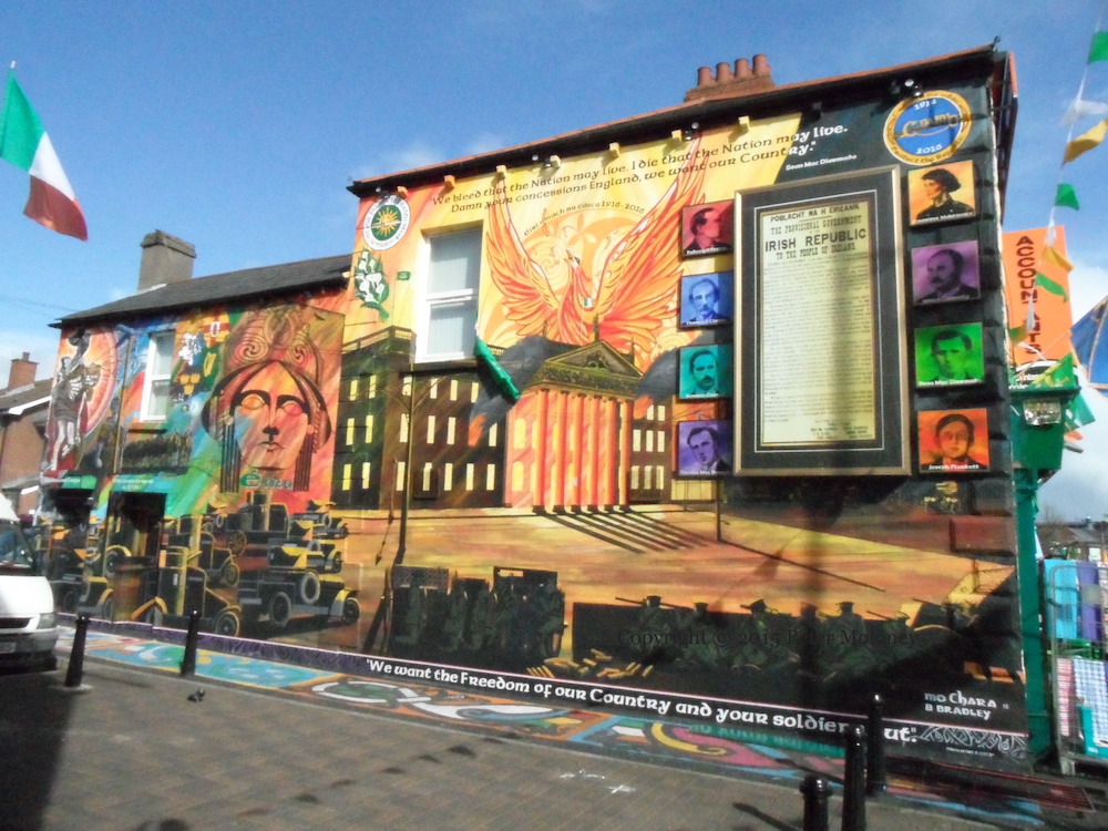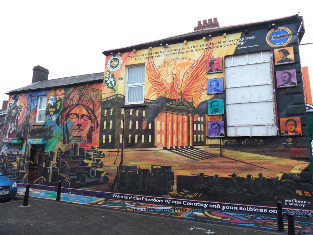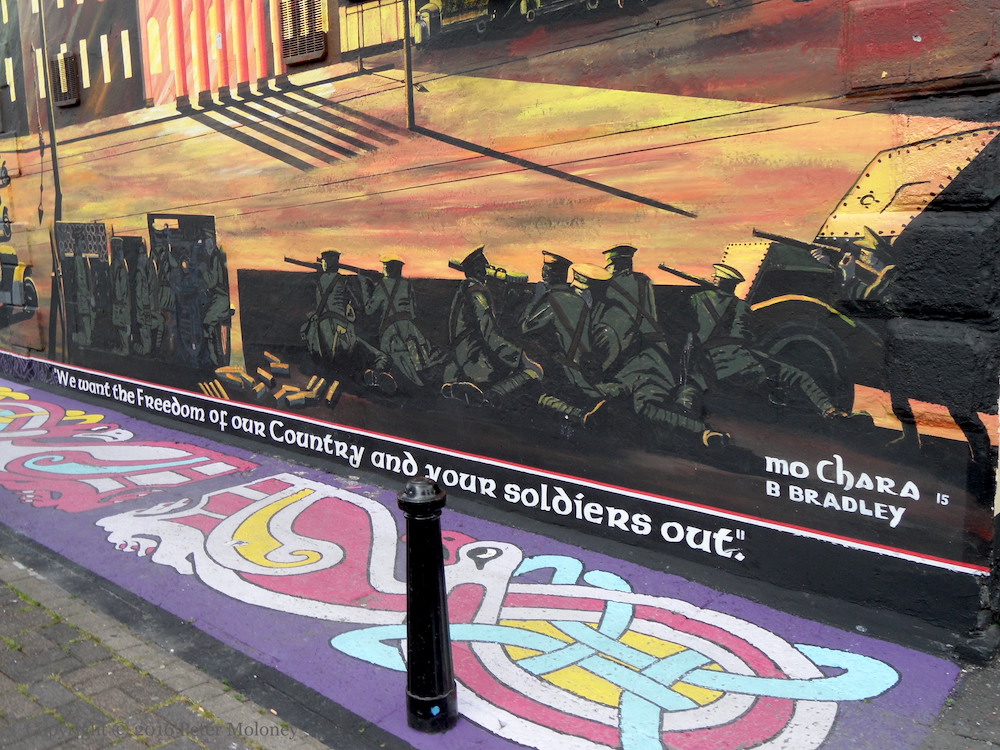At the very bottom is a quote from the mother of painted Gerard ‘Mo Chara’ Kelly, Harriet Kelly: “We want the freedom of our country and your soldiers out.”