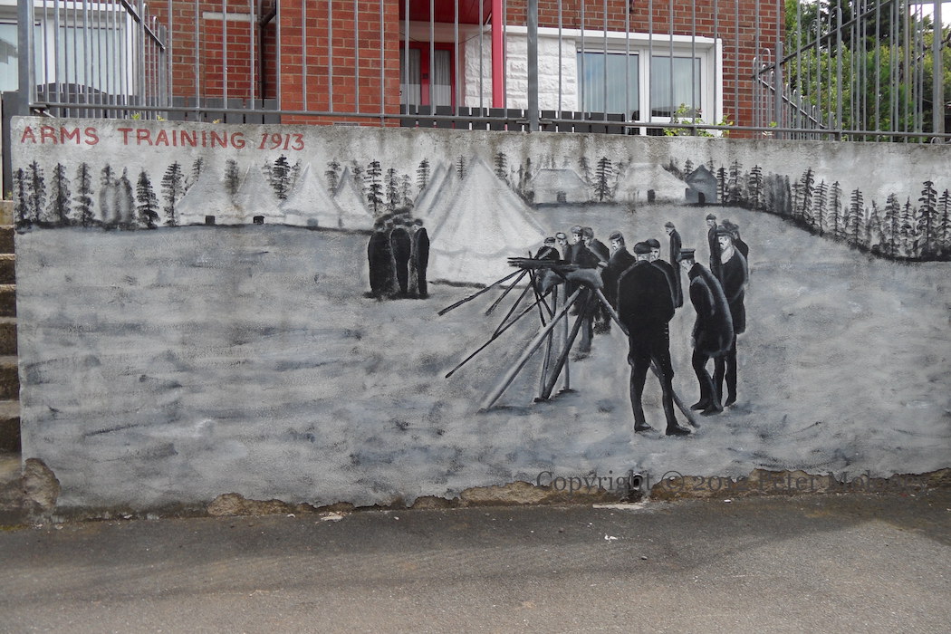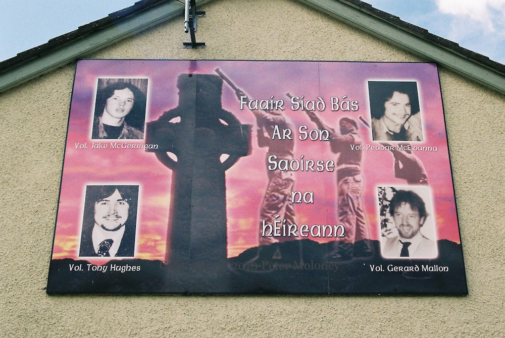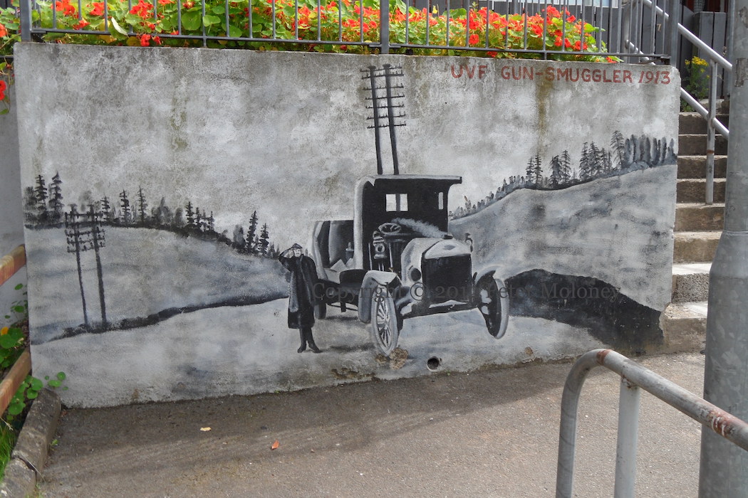 Painted by a crew of Belfast artists – Danny D and Mark Ervine, along with Lucas Quigley, Marty Lyons, Micky Doherty – organised by the Callan Street Residents’ Association, with funding from the European Union’s Peace III initiative.