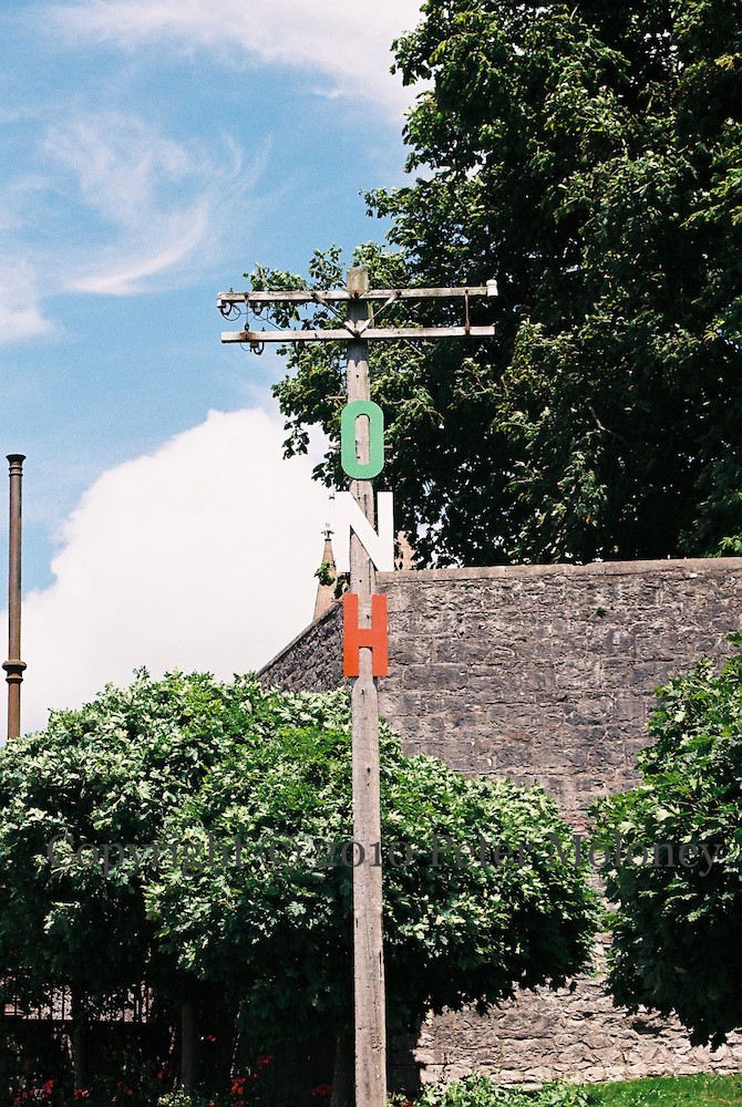 The side-wall features the word “welcome” in many languages, and Celtic knot-work surrounding an image of the Celtic Cross below St Patrick’s, perhaps inspired by this 1903 photograph (Flickr).