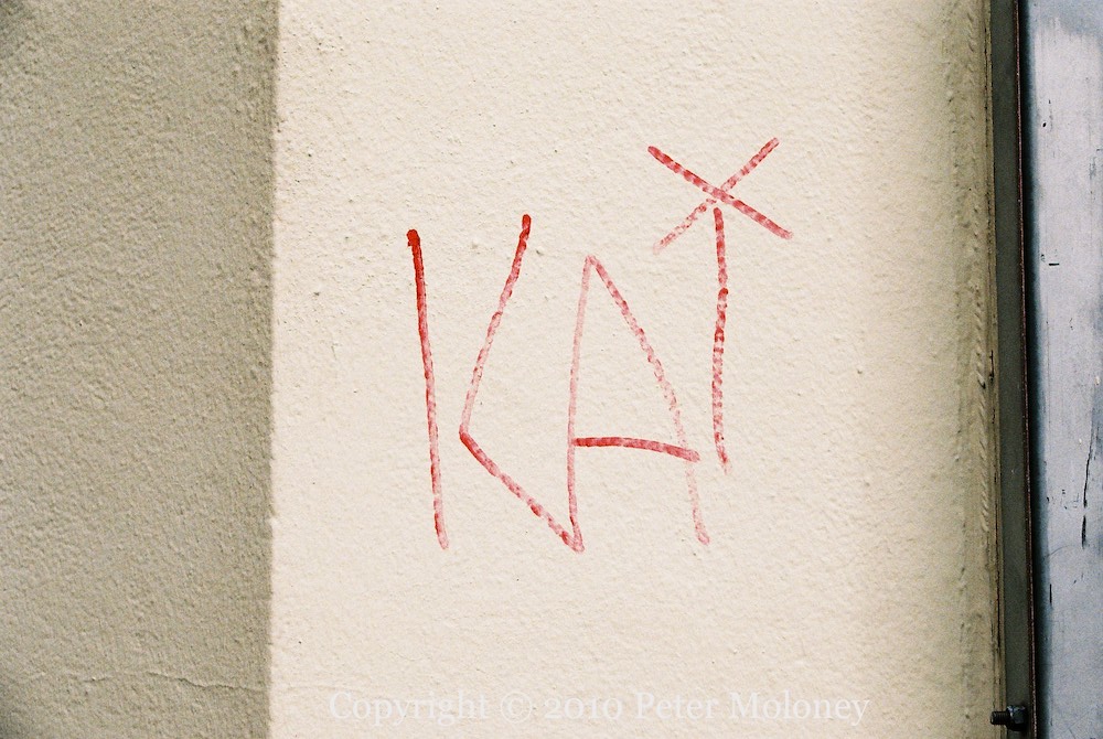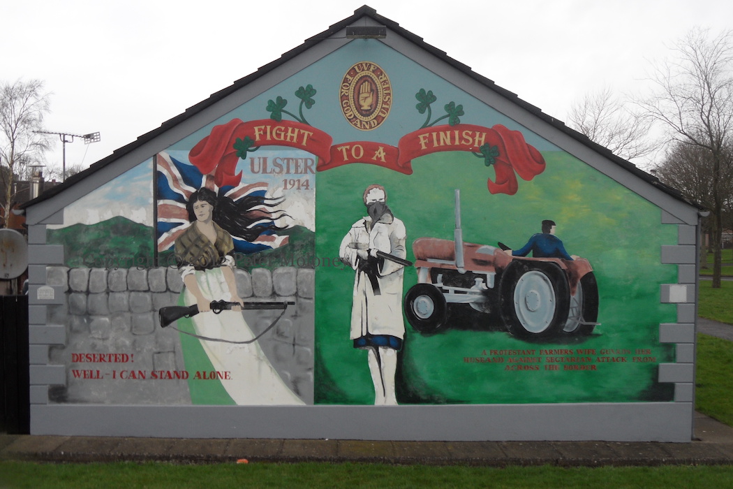 This is the new UDA board in Harryville, Ballymena, replacing the simple board of M05965 with an ornate frame around white six-pointed star surrounded by “SEAB [South East Antrim Brigade], UDA, 4th Batt, A Coy”