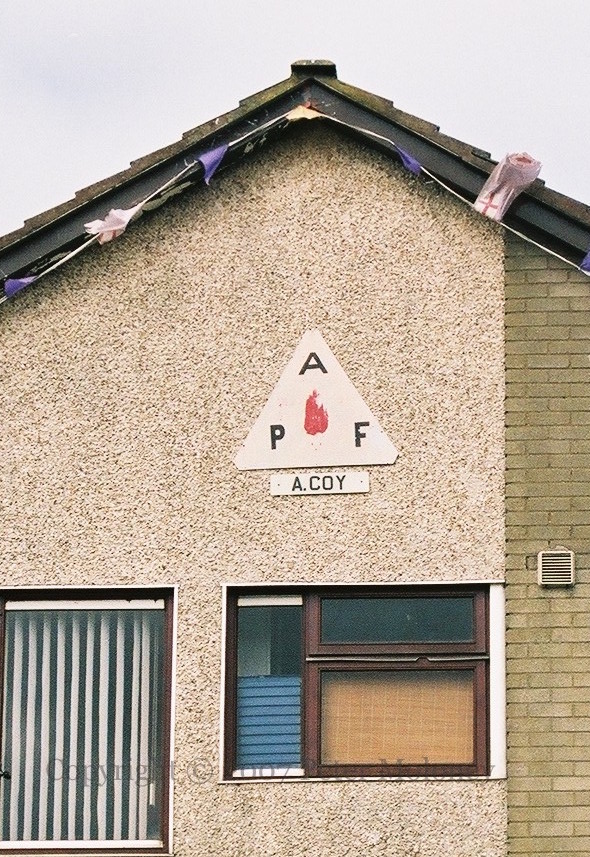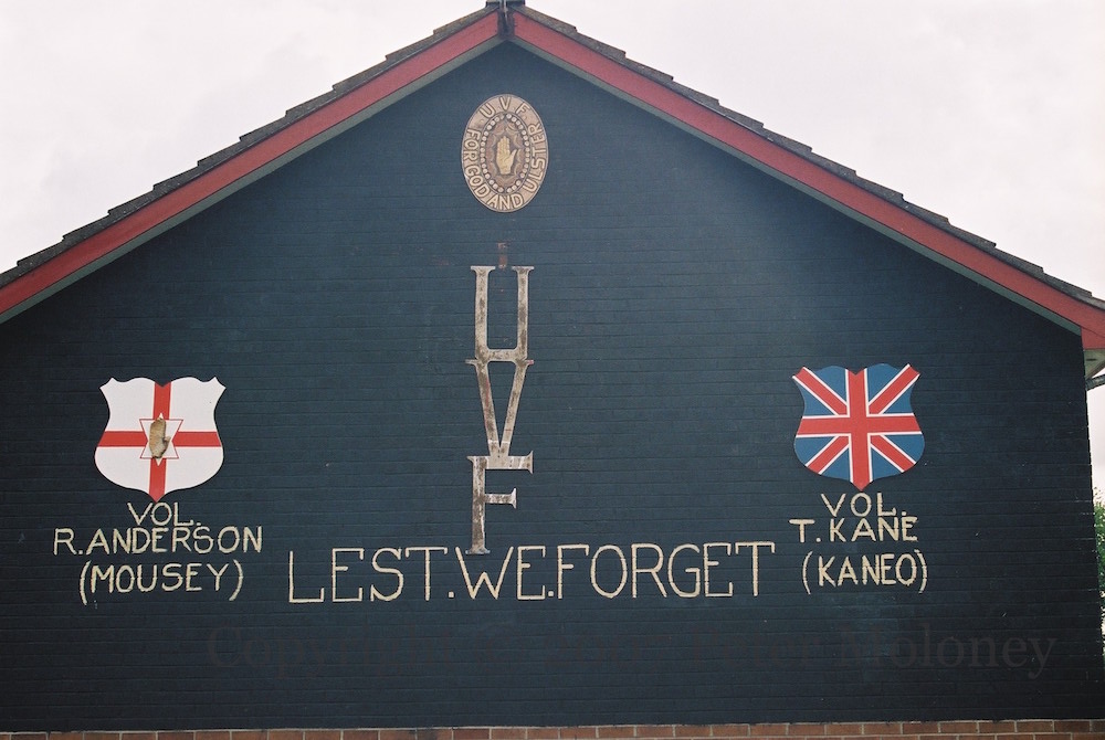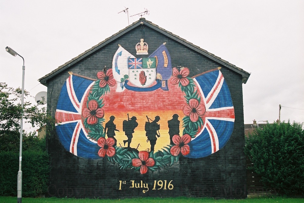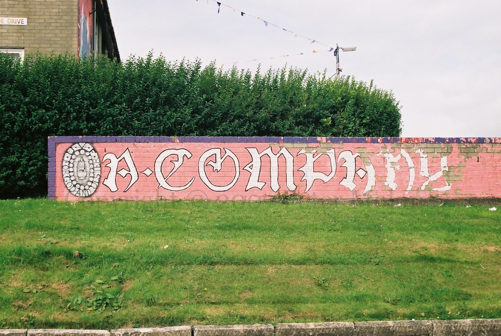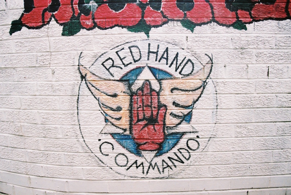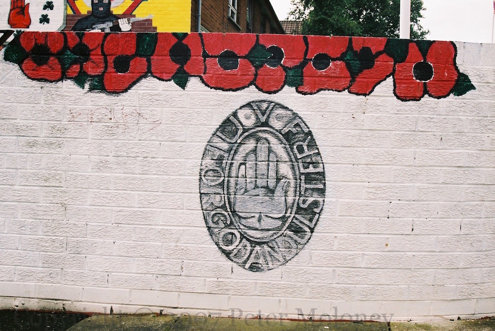A UDA gunman welcomes you to the Kilcooley estate in Bangor. Ordinarily, the insignia of the Ulster Freedom Fighters would appear alongside those of the UDA and UYM, but in this mural, it is replaced by a map of the “home nations”; the Republic Of Ireland is presented in outline rather than by its flag.