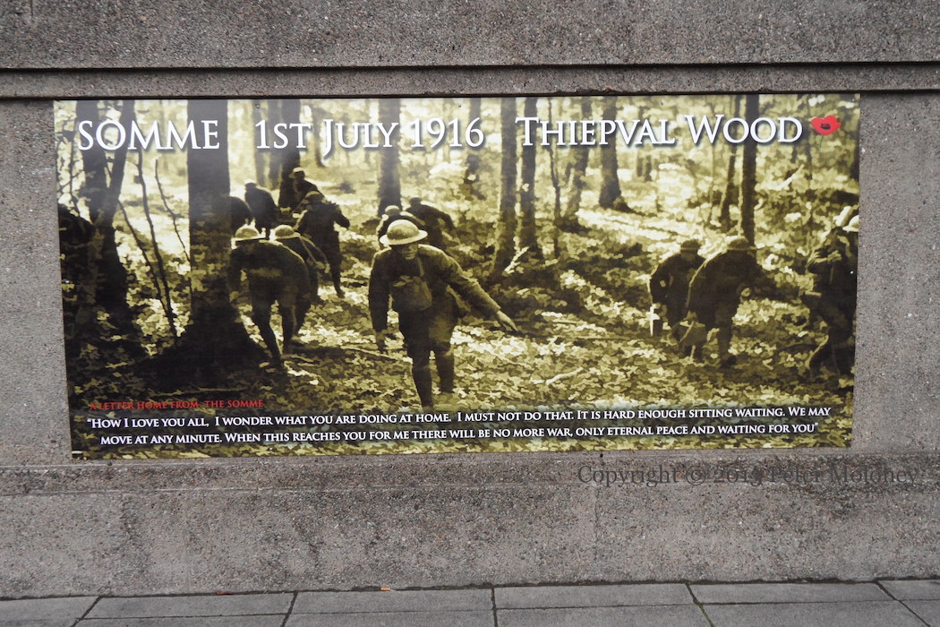 A letter home from the Somme: “How I love you all. I wonder what you are doing at home. I must not do that. It is hard enough sitting waiting. We may move at any minute. When this reaches you for me there will be no more war, only eternal peace and waiting for you.” July 1st, 1916 saw the start of the Battle Of The Somme. The 36th (Ulster) division lost over 5,000 men in an initial successful attack near Thiepval Wood, but were driven back that evening.