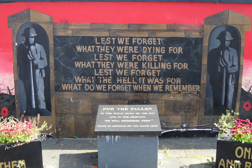 The one with some damage reads, “Our only crime was to serve you, the community and protect ‘our country’. Now times have changed. As a force, our belief is not only ‘for God and Ulster’ but to you, the community, ‘help us to help you’.”