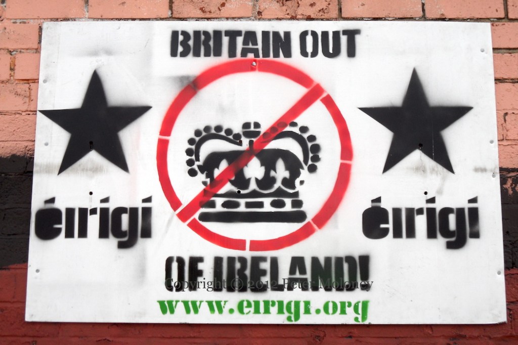 “RUC – PSNI. Name change – no change. No political policing. No special powers. No daily armed raids. No daily harassment. No PSNI in our schools. No MI5. No £10 touts. No interment [sic]. Republican Network.ie.” (The web address no longer functions but there is a Fb page.)