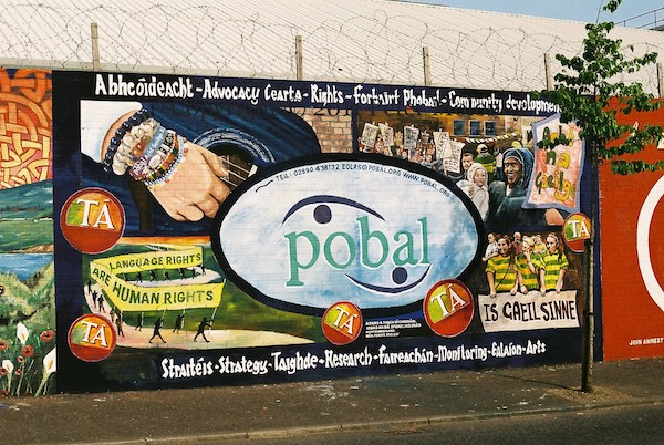 Two boards are added to either end of the many panels of the portraits of victims and the plastic bullet board (State Sponsored Killings) in Beechmount Ave/Ascaıll Ard Na bhFeá.